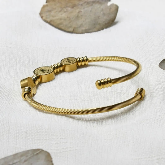 Brazalete San benito baño de oro 18k