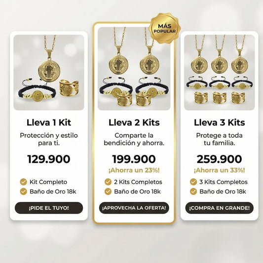 Combo San Benito Protector Baño de oro 18k