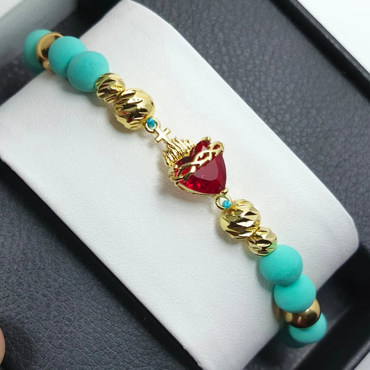 PULSERA CORAZON DE JESUS TEJIDA A MANO