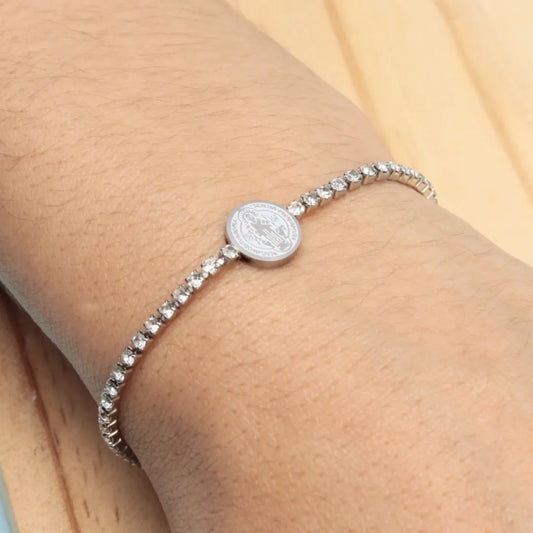 PULSERA TEJIDA SAN BENITO 32 ESFERAS BAÑO DE ORO