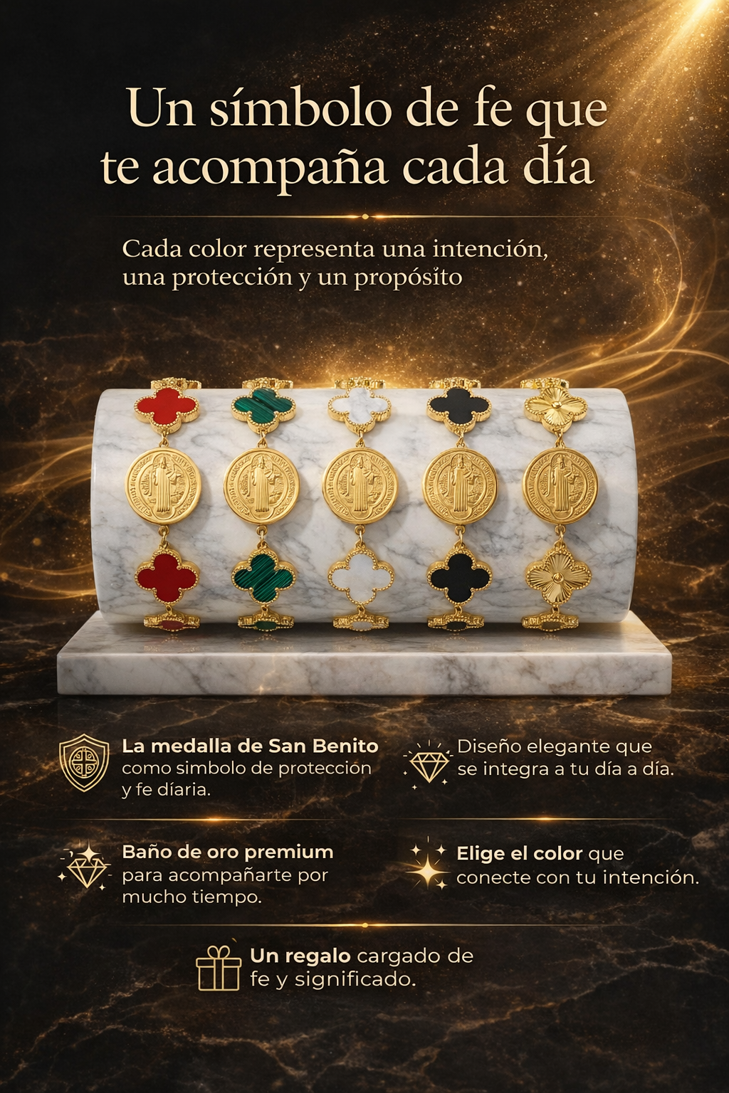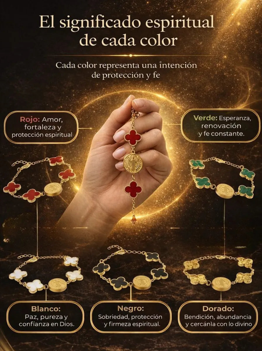Escogí el color rojo porque representa fuerza y me encantó. El baño de oro no se ha pelado y la medalla de San Benito es hermosa. Se nota que es un producto con propósito.